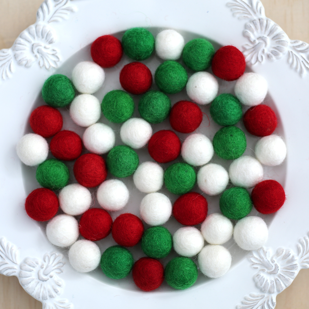 Felt Wool Balls Christmas Mix - Pack of 100