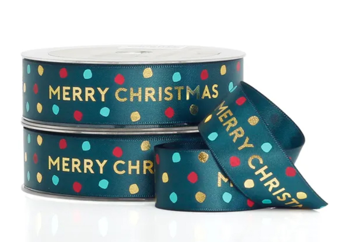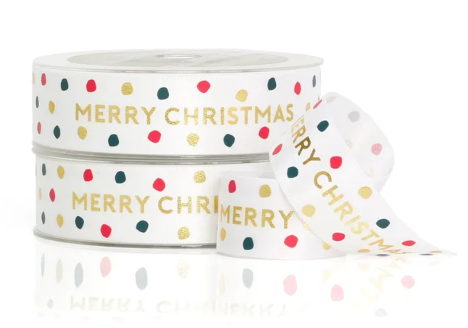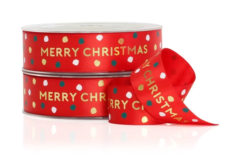 Luxe 25mm wide satin Merry Christmas ribbon.