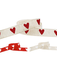 Beautiful 15mm wide cotton ribbon with a vintage heart design.